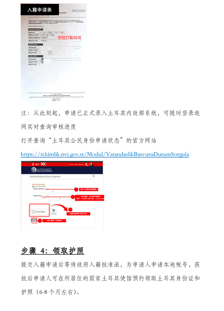 从正式递交移民材料起,6-9个月内全家可获国籍批准函。获批后,可登陆土耳其本土预约领取护照或者在全世界任何国家土耳其使领馆预约领取。